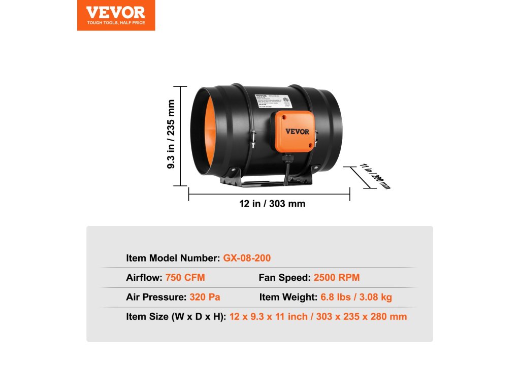 Készen állsz egy kis friss levegőre? Akkor vegyen egy mély lélegzetet és készüljön fel! A VEVOR inline csatornás ventilátor nagy sebességű, tiszta réz motorral van felszerelve, amely nagy mennyiségű levegőt szállít a bőséges szellőzés érdekében. A zaj csökkentése érdekében rezgésmentes gumipárnákkal rendelkezik.