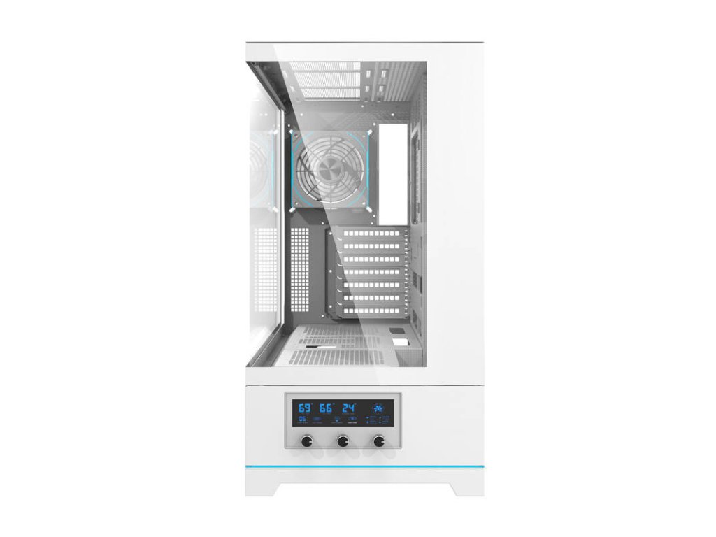 A ház digitális hőmérséklet-szabályozó rendszerrel van felszerelve, amely lehetővé teszi a CPU, a GPU és a belső hőmérséklet valós idejű nyomon követését. A ventilátorok sebessége az előlapon található praktikus gombokon keresztül állítható, így a hűtést tökéletesen az aktuális igényekhez és a munkaterheléshez igazíthatja.