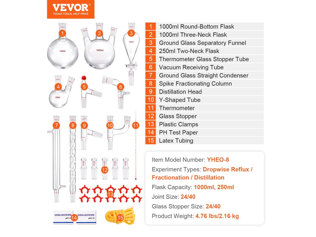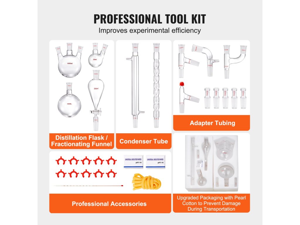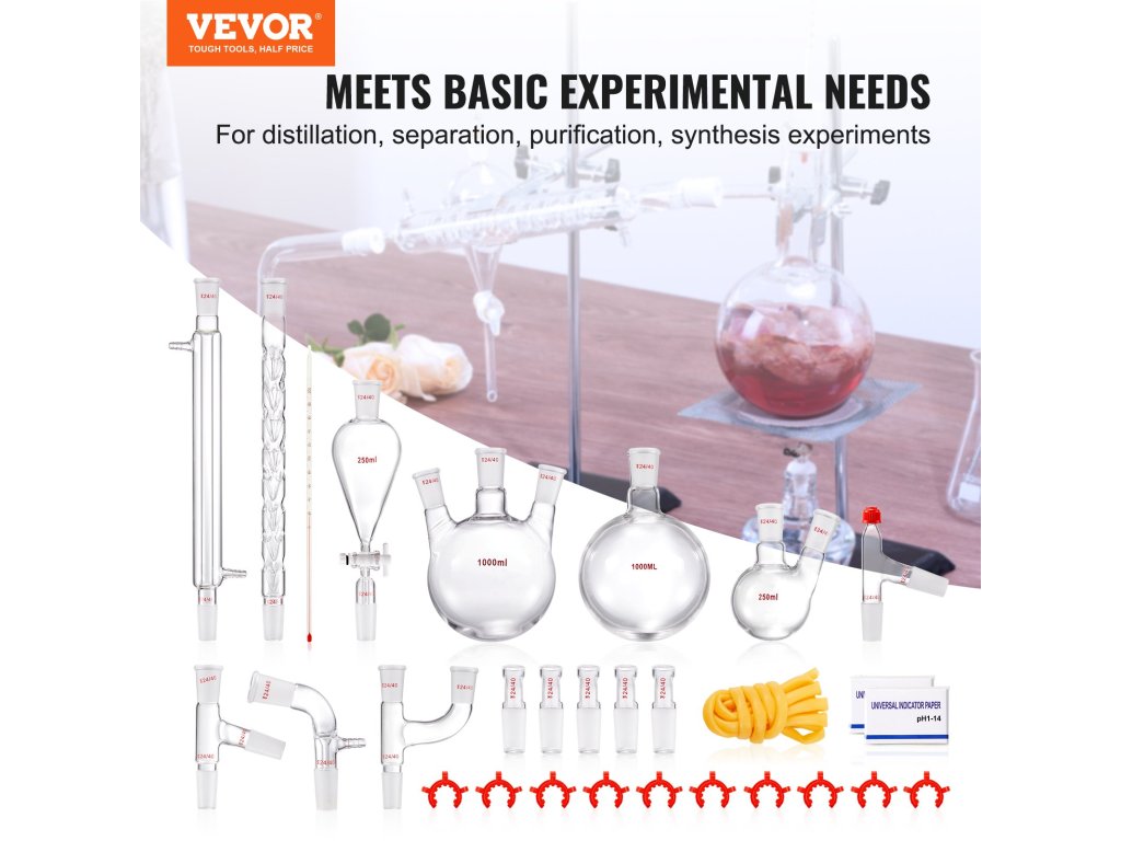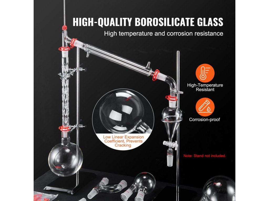 Növelje az illóolajok extrakciós szintjét a VEVOR desztilláló készülékkel. Tartós boroszilikát üvegből készült 3.3 és garantálja a hosszú élettartamot és megbízhatóságot. Magas hőmérséklet- és korrózióállósággal is rendelkezik, így garantálja a hatékony kísérleteket és a magabiztos eredményeket!