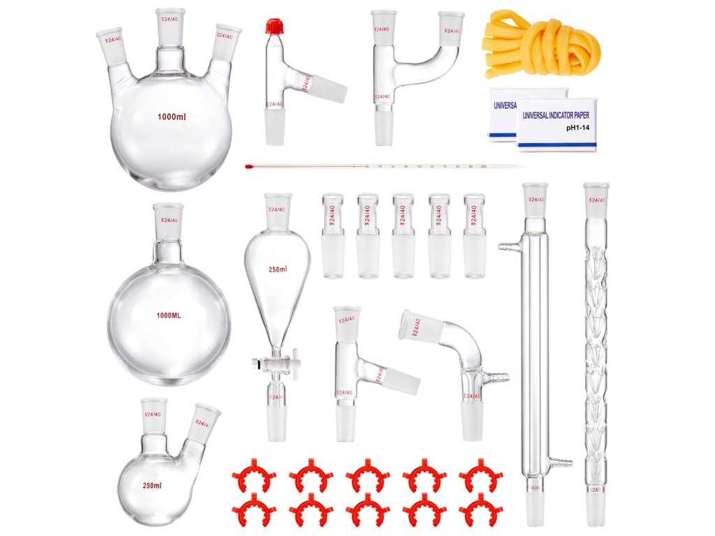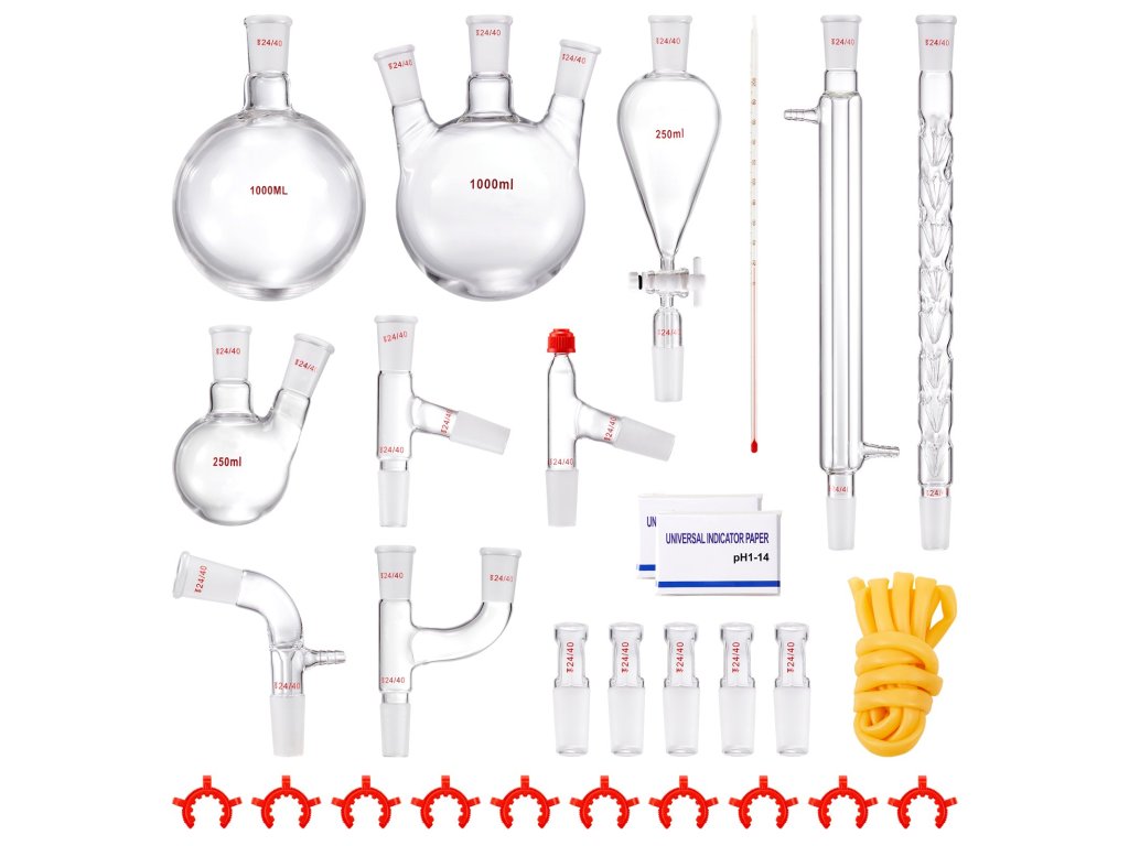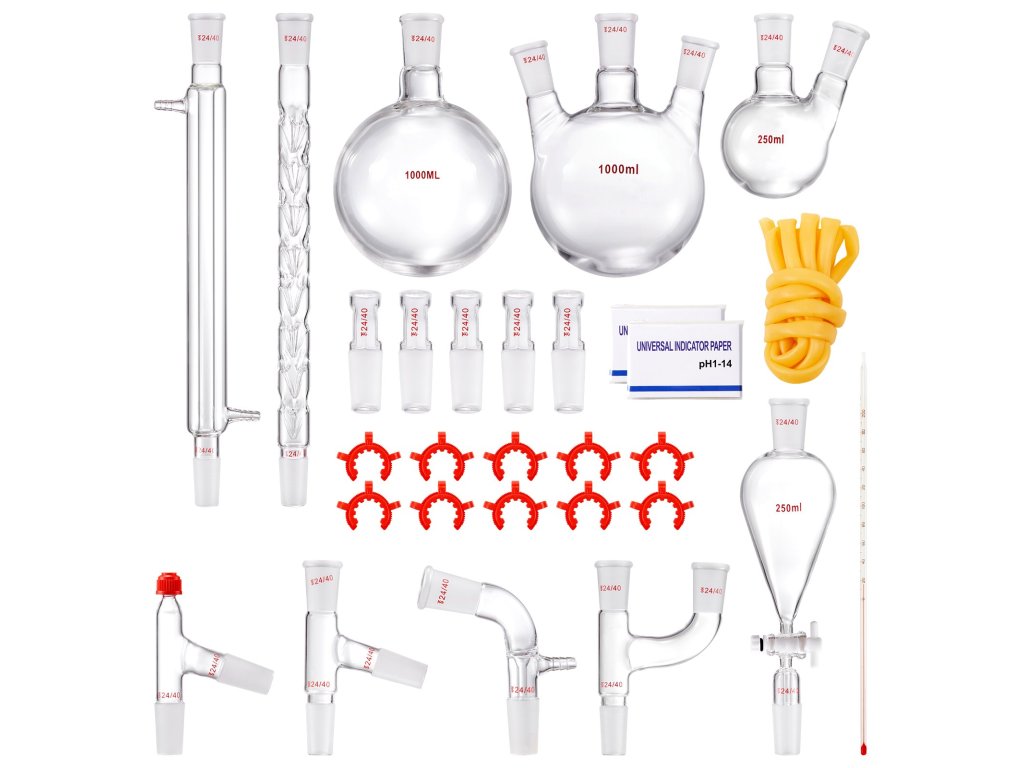 Desztilláló készlet, laborüveg, 3,3 boro, 1000 ml, 24/40, 29 db.