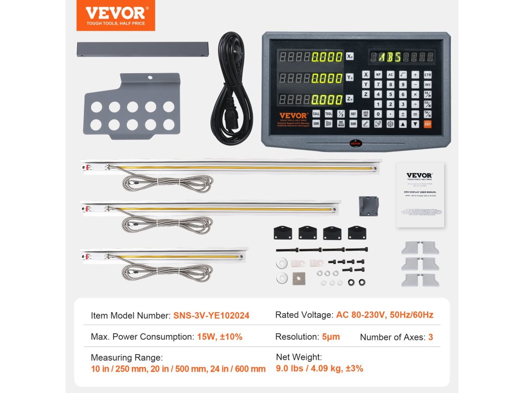 Digitális 3 tengelyes kijelző lineáris skálákkal 250, 500, 600 mm
