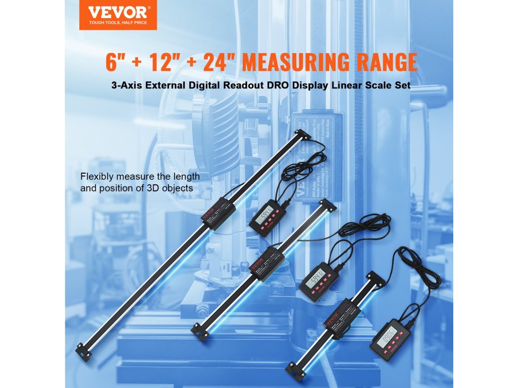 Digitális kijelző 3 tengelyes, lineáris skálák 15,2 cm, 30,5 cm, 61 cm