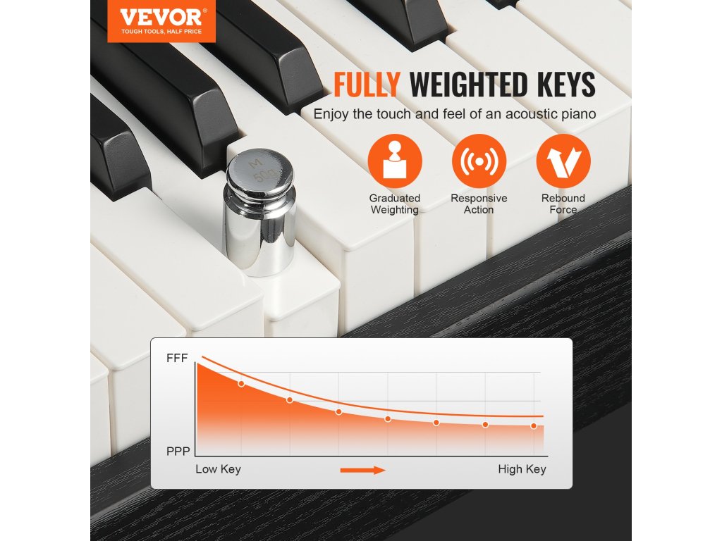 VEVOR 88 billentyűs All-In-One zongora dupla zsámollyal és dupla billentyűzettel