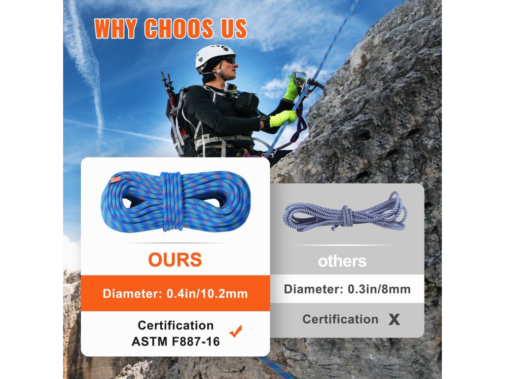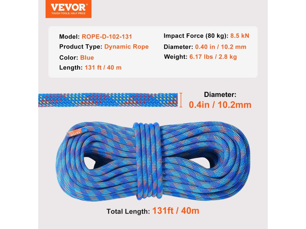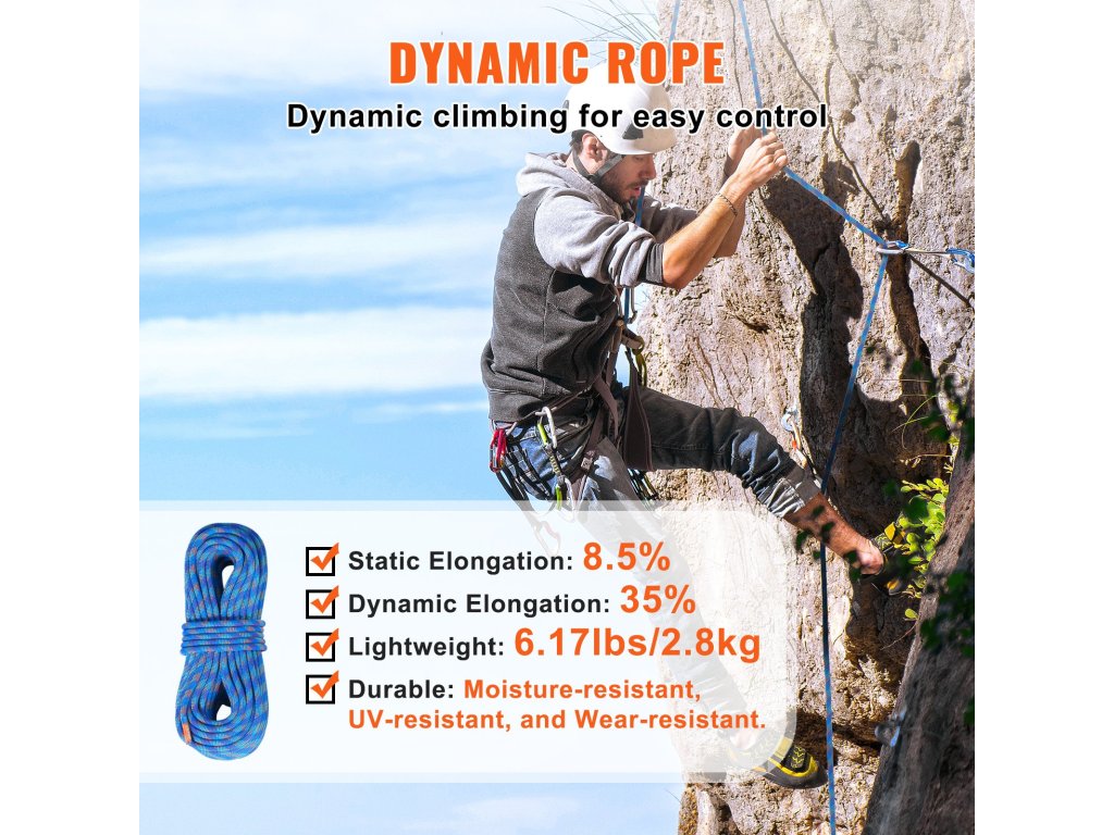 VEVOR dinamikus mászókötél - kalandozáshoz készült