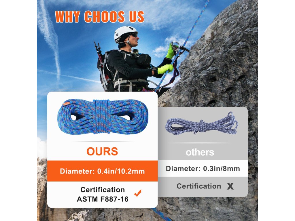 VEVOR dinamikus mászókötél - kalandozáshoz készült