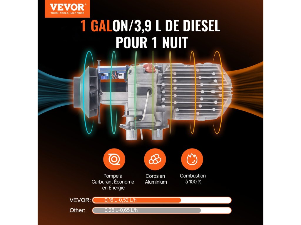Többé nem kell elviselnie a hidegben való vezetés kellemetlenségeit. A VEVOR olajfűtés tökéletes megoldás autója, lakókocsija, teherautója és egyéb járművei számára. Gyorsan egyenletes meleg levegőáramot biztosít, megszüntetve a hűvös légkört járművében, és kényelmes utazási élményt nyújt.