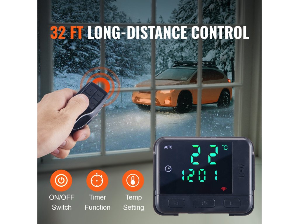 Dízel fűtőberendezésünkhöz egy 32 láb hosszú távirányító tartozik, amely lehetővé teszi, hogy távolról is beállítsa a beállításokat és élvezze a hőt. Vegye át az irányítást a kényelem felett anélkül, hogy elhagyná a helyét. Az LCD-képernyő pedig világos és intuitív kijelzőt biztosít a kényelmes kezelés érdekében.