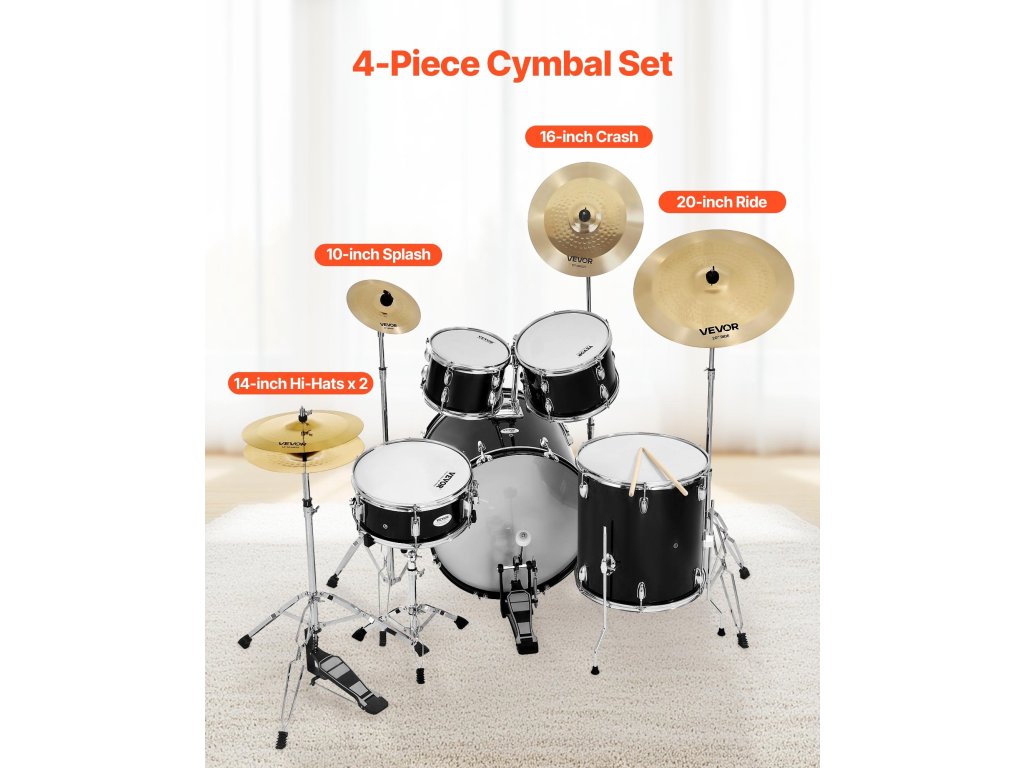 A cintányér csomagunk 4 egyedi hangot biztosít: Hi-hats, Crash, Ride és Splash. Mindegyik cintányér új dimenziót ad a zenédhez, akár rockot, jazzt vagy popot játszol - tökéletes minden dobos számára!