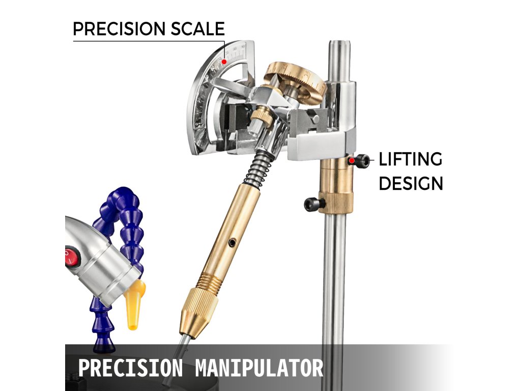 A precíziós skála megkönnyíti a csiszolási szög beállítását a pontos polírozás érdekében. Emelhető kialakítás, könnyű és hatékony működés.