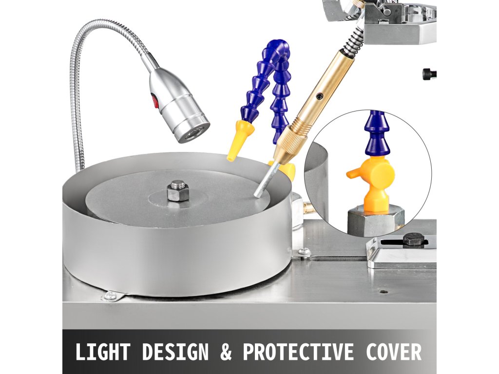 Minden sarkot megvilágító lámpával, független kapcsolóval, biztonságos és kényelmes; szivattyú kialakítás a vízellátás megkönnyítésére a polírozás során; védőburkolat a fröccsenés megakadályozására és a tiszta és rendezett munkakörnyezet biztosítására.