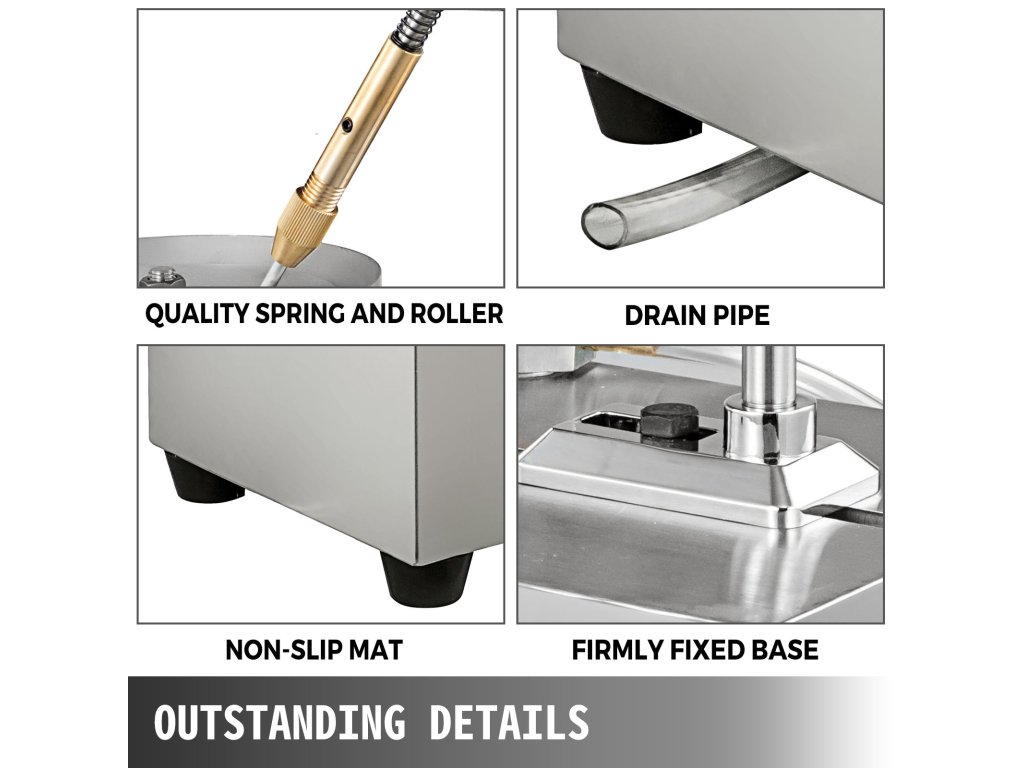 A mechanikus fogantyú belsejében kiváló minőségű rugókat és agyaghengereket használnak; A lefolyócső megkönnyíti a víz elvezetését a polírozás során; A szilárd alap szilárd és stabil; A talpbetét csúszásmentes kialakítása tartós. Egy 500 g háromszögletű csiszolóanyagot tartalmazó zsákot tartalmaz.
