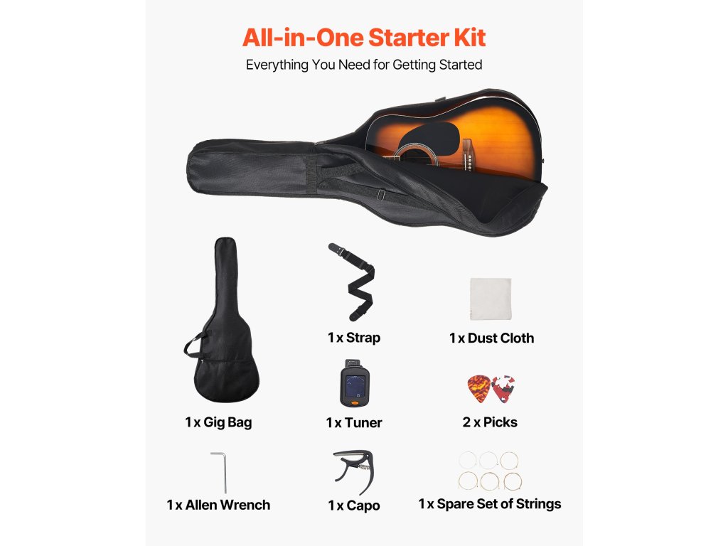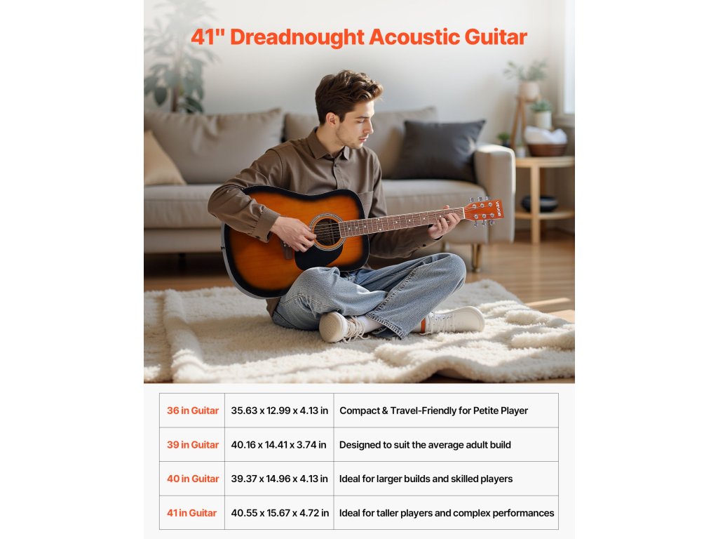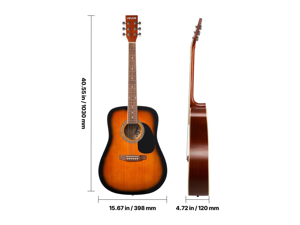 Dreadnought akusztikus gitár 41 hüvelykes / 1041,4 mm-es sunburst hangzású, tokkal