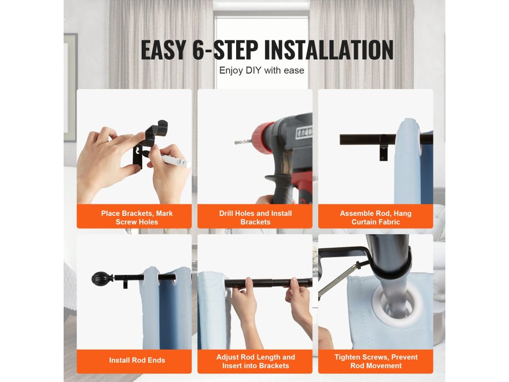 Nincs szükség bonyolultabb lépésekre vagy szakmai ismeretekre. Még ha kezdő is, a dupla függönyrúd könnyen, néhány perc alatt felszerelhető. A problémamentes szerelési folyamatnak köszönhetően késedelem nélkül élvezheti a gyönyörű függönydekorációt.