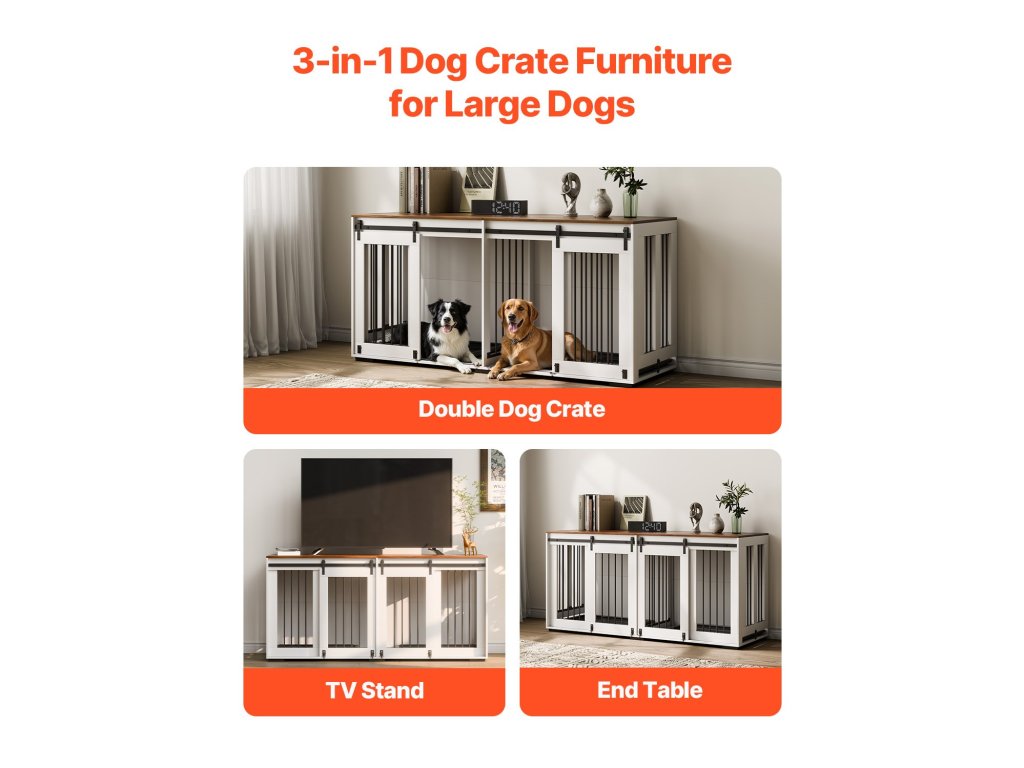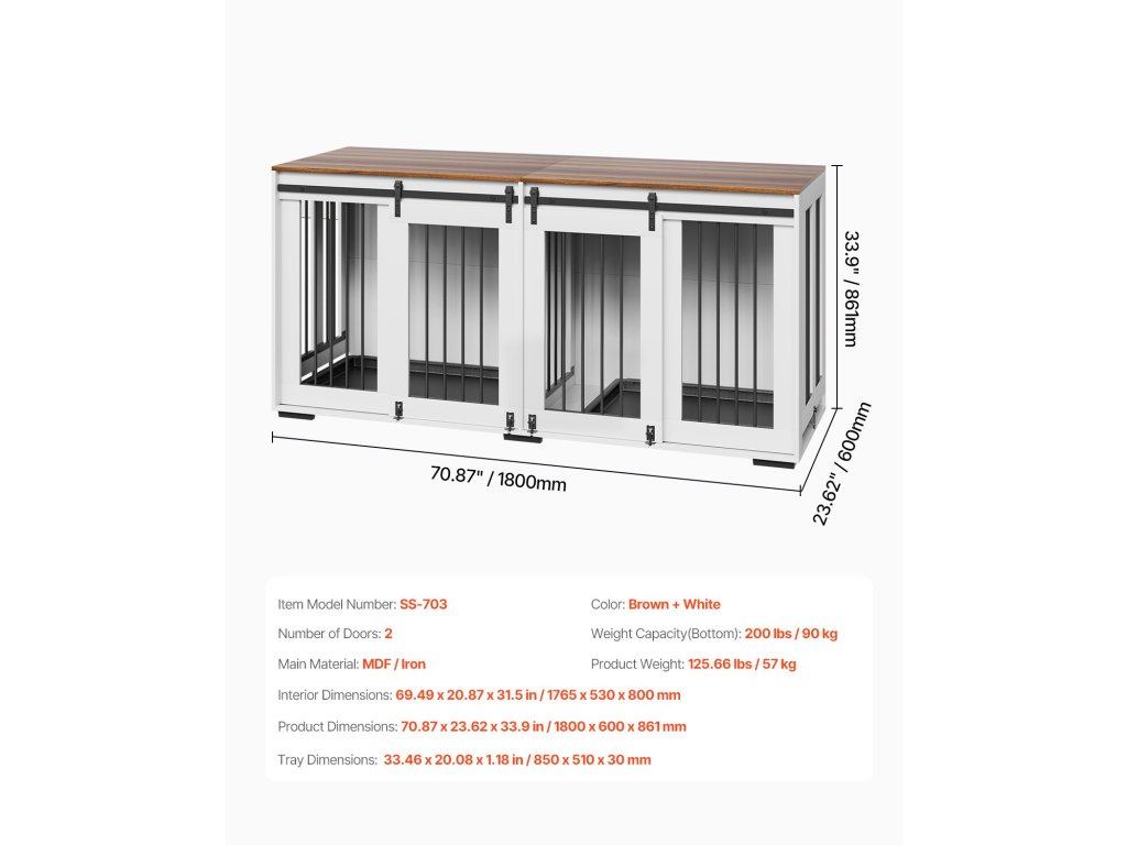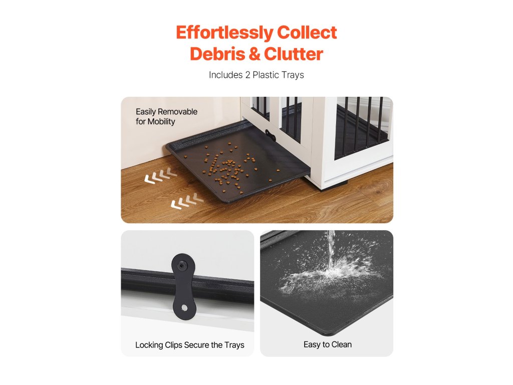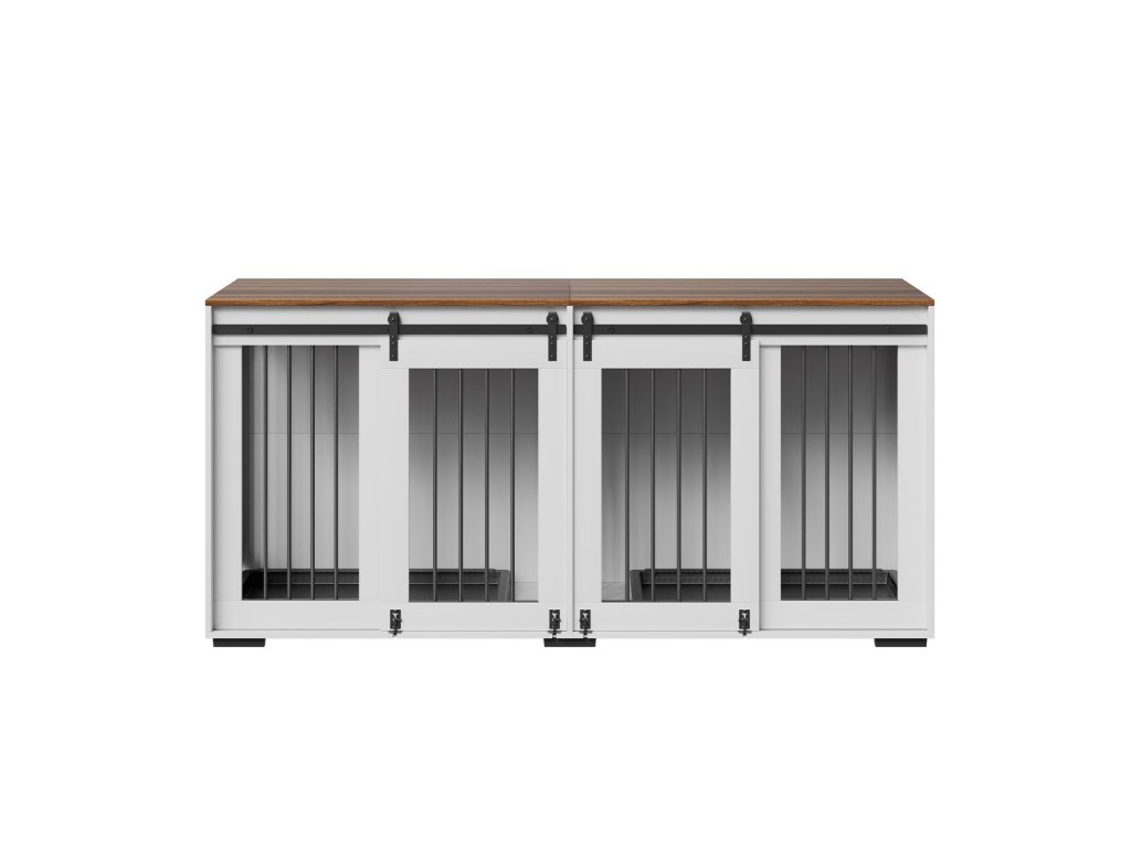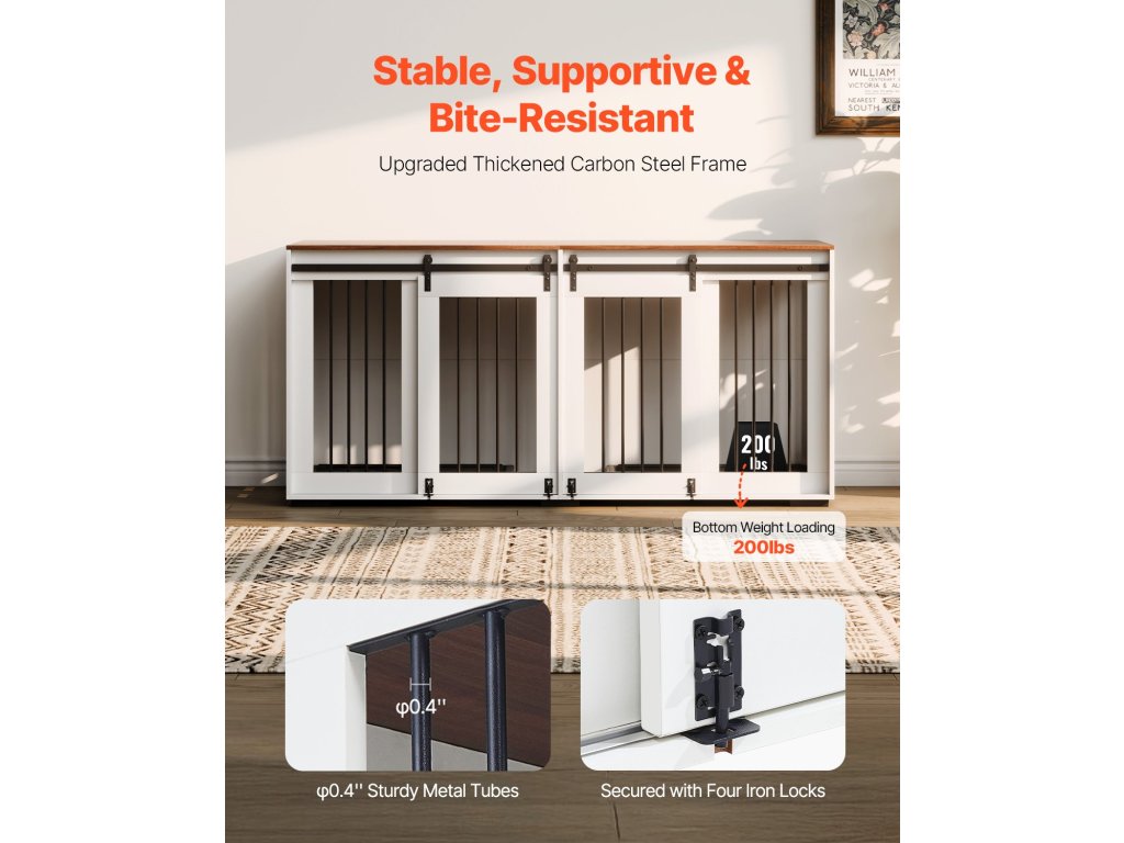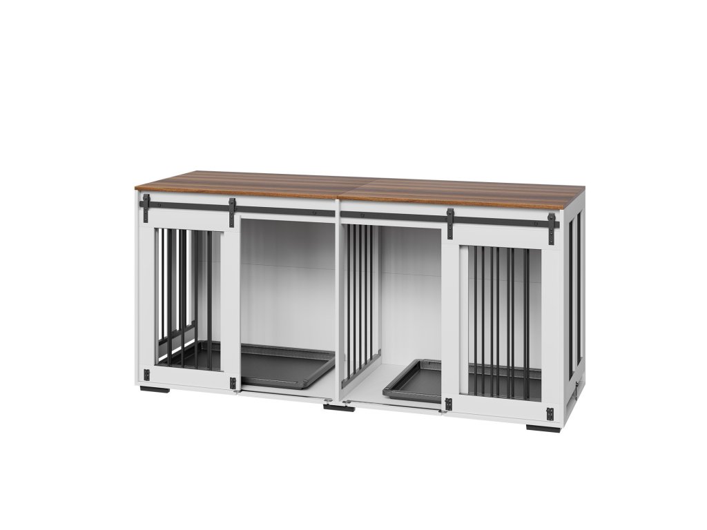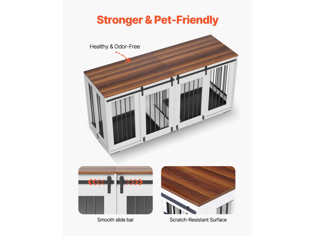 Ez a bútor stílusú kutyaláda egyesíti az eleganciát és a praktikumot. Megerősített szénacél vázzal, biztonságos zárral ellátott tolóajtókkal és tárolásra vagy díszítésre szolgáló, többfunkciós felső résszel rendelkezik. Előfúrt lyukakkal könnyen összeszerelhető, stílusosabbá téve otthonát.