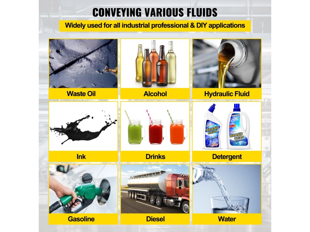 Ez a levegővel hajtott membránszivattyú számos viszkózus és gyúlékony folyadékot, többek között fáradt olajat, alkoholt, hidraulikus folyadékot, benzint, dízelüzemanyagot, mosószert, ivóvizet stb. tud szivattyúzni.