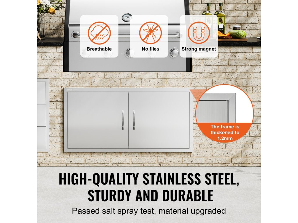 Ezek a grillbejárati ajtók masszív, kiváló minőségű rozsdamentes acélszerkezetből készülnek, korrózióállóak, vízállóak, karcállóak, könnyen tisztíthatók, nem hagynak nyomokat vagy foltokat. Teljesen zökkenőmentes kivitel, nincsenek éles sarkok, így biztosítva a felhasználó biztonságát.
