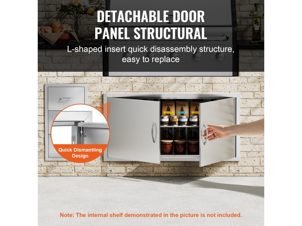 Dupla süllyesztett ajtó 1067×534 mm rozsdamentes acélból, grillsütő fogantyúkkal