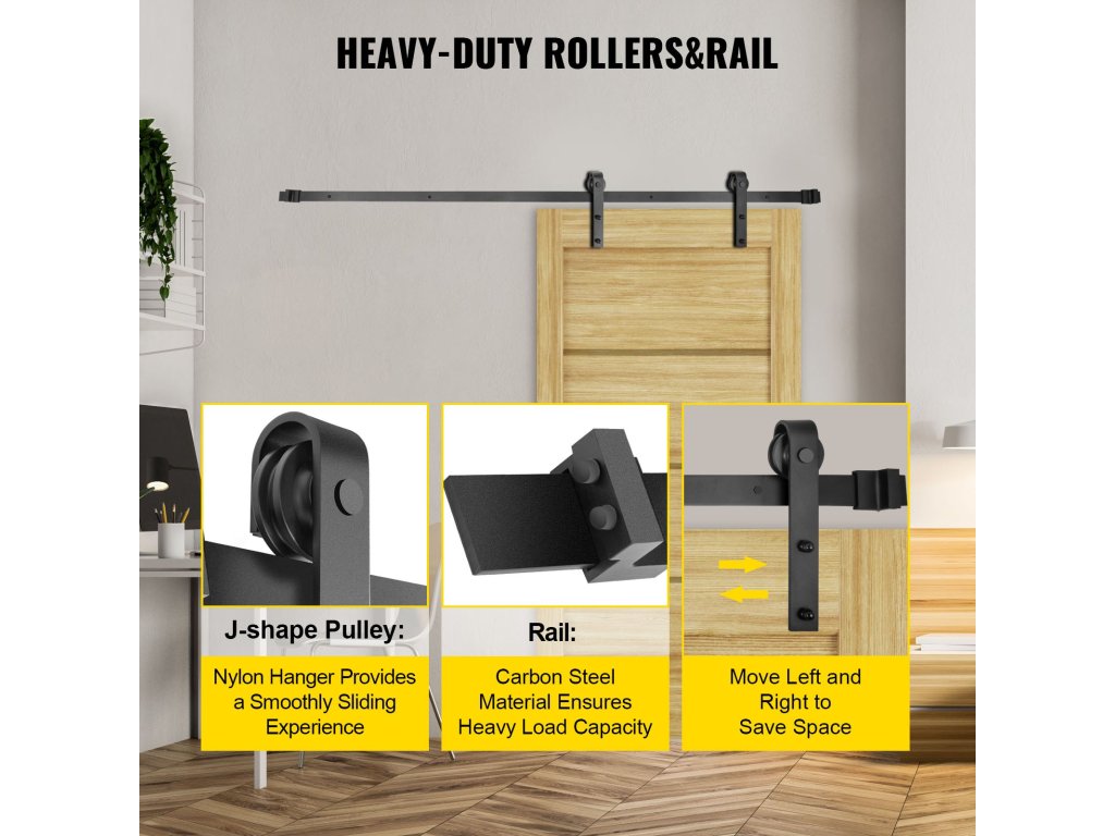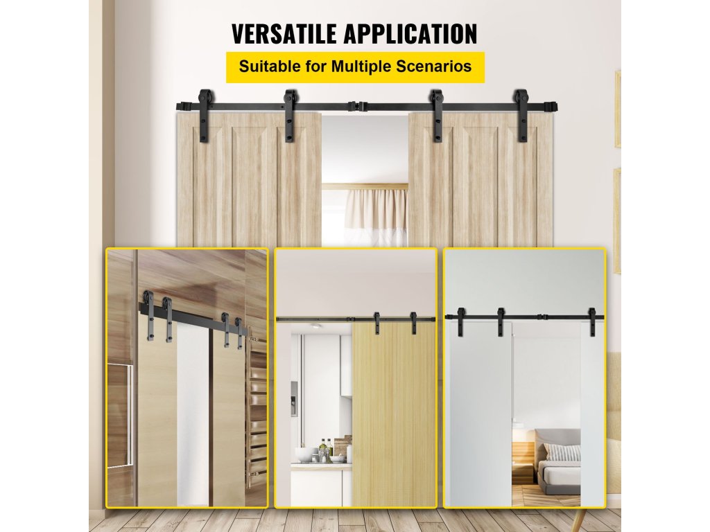 A tolóajtókészlet fából készült falakra és betonfalakra egyaránt felszerelhető. Kiválóan használható hálószobákban, szekrényekben, konyhákban, pajtákban, garázsokban és istállókban.
