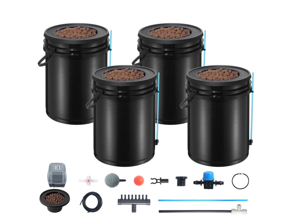 DWC 4×5 gallonos hidroponikus rendszer szivattyúval, kövekkel és szintjelzővel