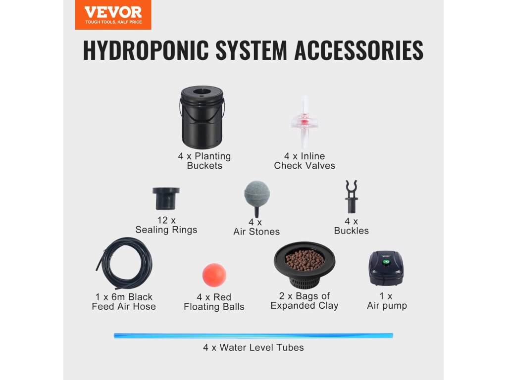 A PP hidroponikus vödrök erősek és tartósak, az 5"-os ültetőkosarak nagyobb helyet biztosítanak a növényeknek a gyökérnövekedéshez. A tömítőgyűrűk és az ellenőrző szelepek hatékonyan megakadályozzák a vízszivárgást és a visszaáramlást.