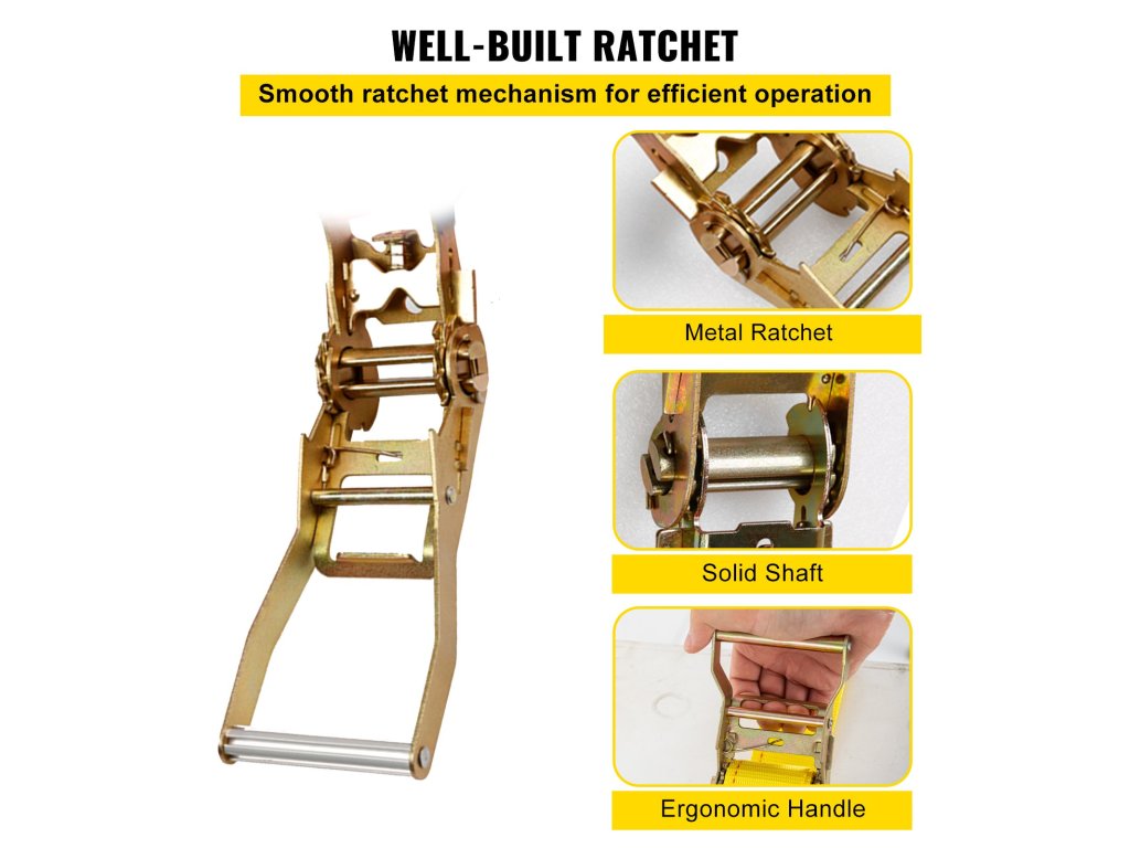 Tieto račňové popruhy sú ideálne na zabezpečenie motocyklov, bicyklov, boxov a ďalších vecí. Ergonomická západková rukoväť a uvoľňovacia páka uľahčujú nastavenie. Môžete tak dosiahnuť dokonalé napnutie na zabezpečenie nákladu. Naše popruhy sú odolné a zvládnu ťažké bremená bez toho, aby sa zlomili. Sú ideálne na použitie v prívesoch, nákladných vozidlách a dodávkach. Jasná žltá farba zvyšuje viditeľnosť a bezpečnosť. Tieto popruhy sú univerzálne a vhodné na rôzne použitia. Poskytujú spoľahlivosť a pevnosť, ktoré potrebujete na bezpečnú prepravu.