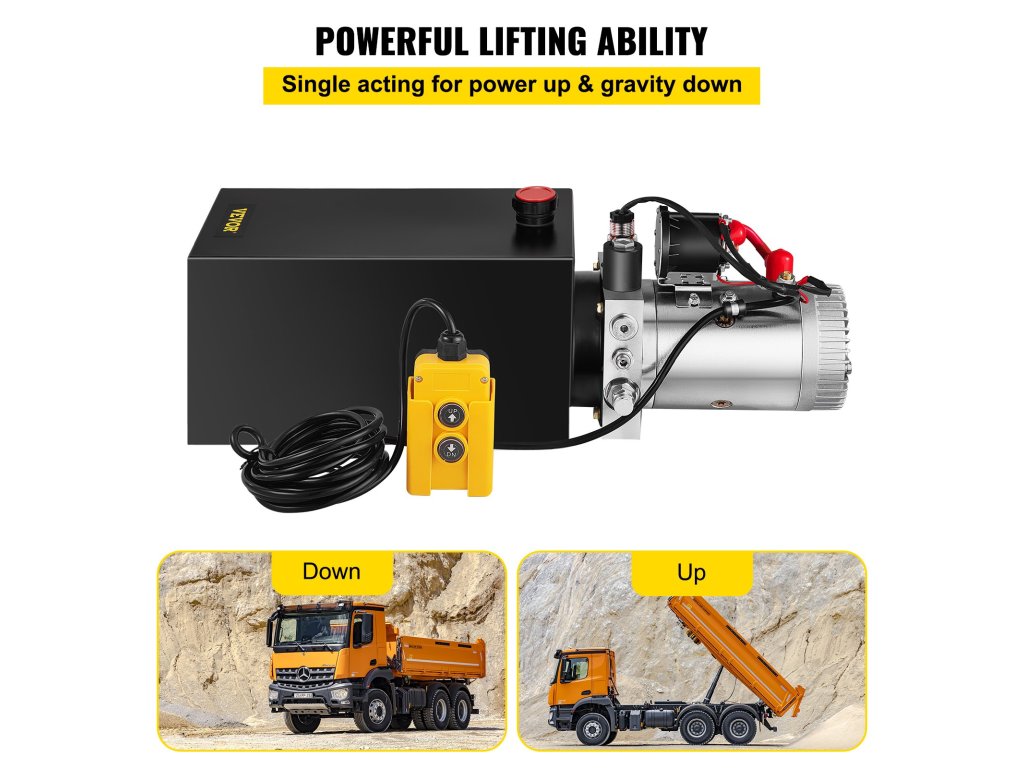 Egyszeres működésű hidraulikus szivattyú 9,5 literes billenő pótkocsihoz 12 V