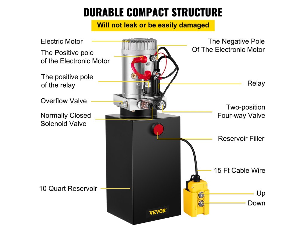 Megbízhat ennek az elektromos hidraulikaszivattyúnak a minőségében, mivel speciálisan kezelt robusztus fémből készült, és a teljes szerkezetet megerősítették. Emellett nagy teljesítményű villanymotorral van felszerelve, amelyet tetszőlegesen gyakran használhat.