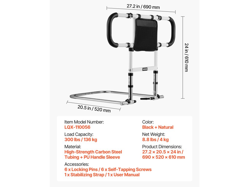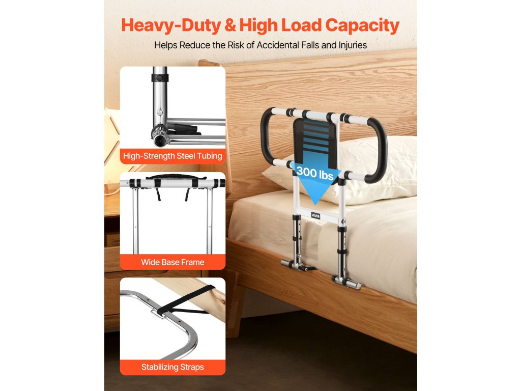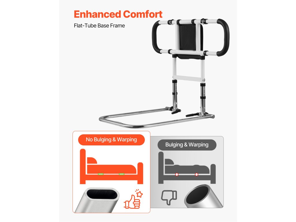 A mellékelt hevederek biztonságosan rögzítik a korlátot a helyén, megakadályozva, hogy használat közben meginogjon vagy elcsússzon. A meghosszabbított alapkeret növeli az érintkezési felületet, stabilabb alátámasztást biztosítva.