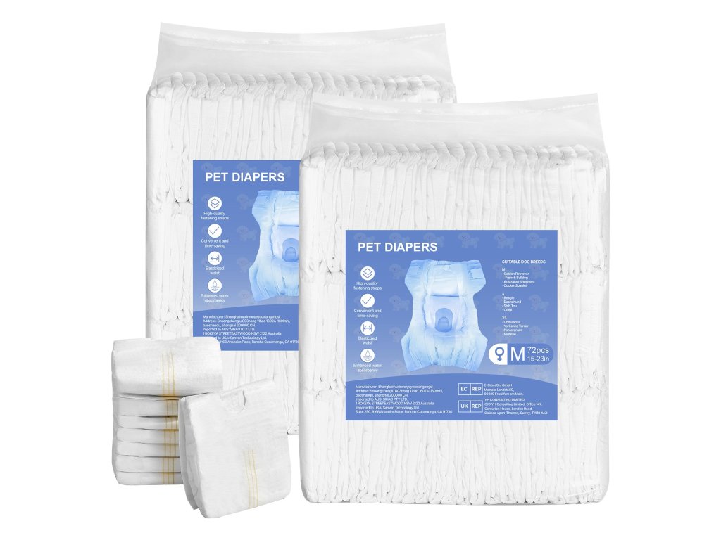 Eldobható pelenkák szukáknak, M-es méret, szuper nedvszívó, jelzős, 144 db