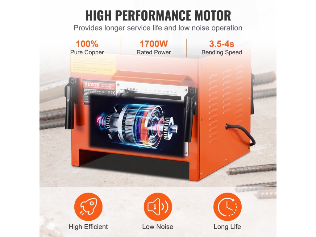 A betonvashajlító nagy teljesítményű motorral van felszerelve, amely 100%-os tisztaságú rézmaggal rendelkezik, kettős tartóssággal a nagy vezetőképesség, az alacsony zajszintű működés, a magas hőmérsékleti ellenállás és a hosszú távú energiatakarékosság érdekében.