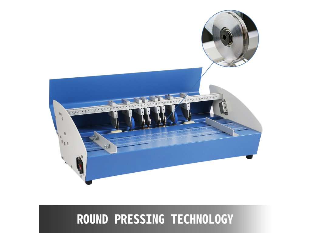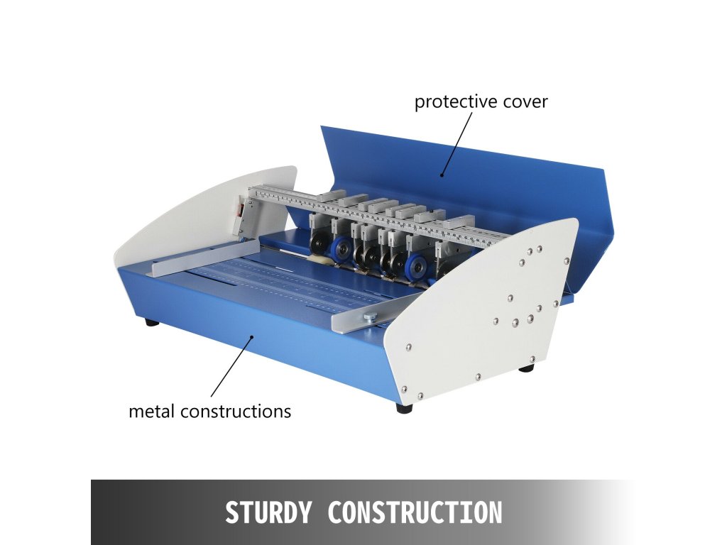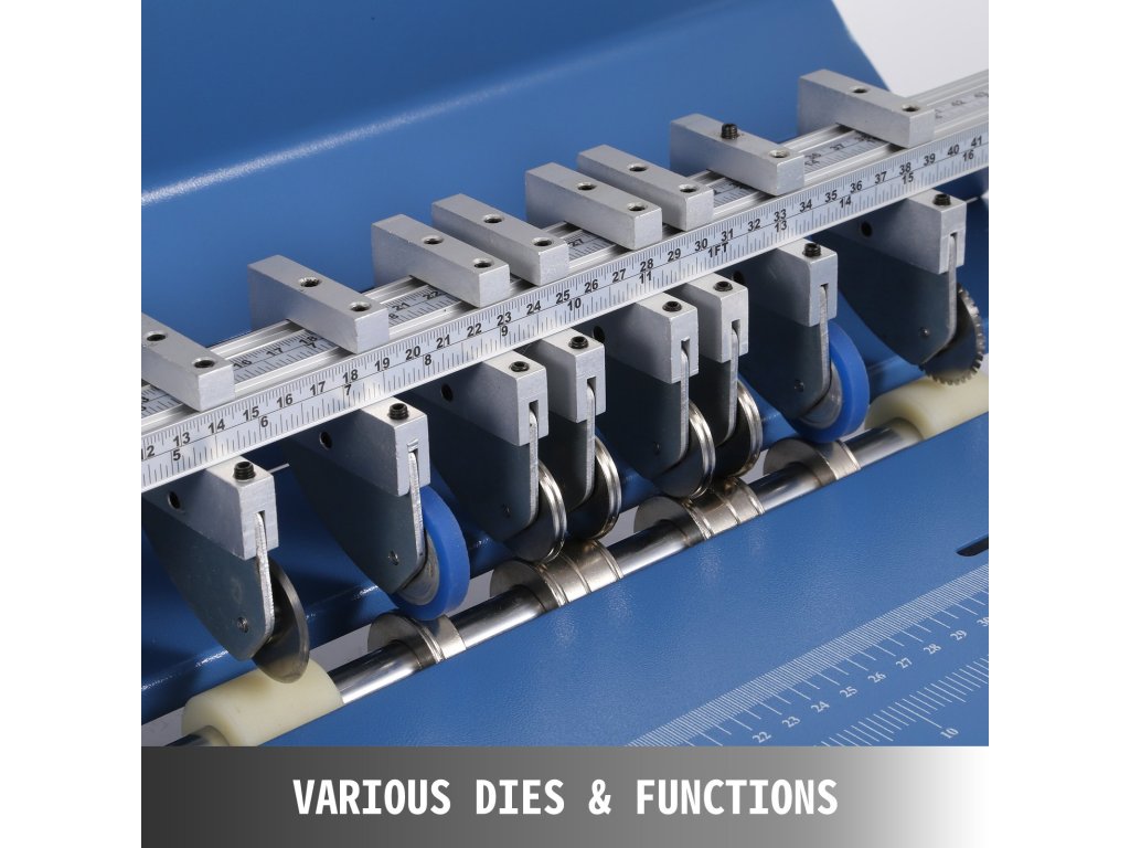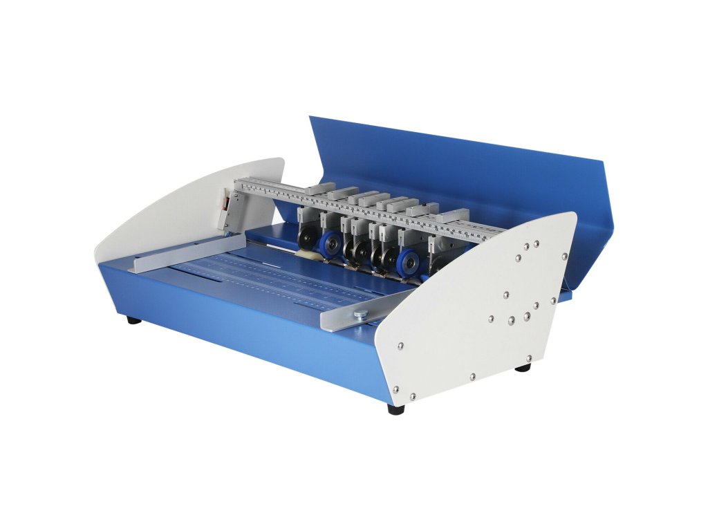 A papírvágó perforáló mátrixszal, vágó mátrixszal, gumihengerekkel, tartós acélmátrixokkal van felszerelve, amelyek a legjobb gyűrődési, pontozási és perforálási hatással rendelkeznek.