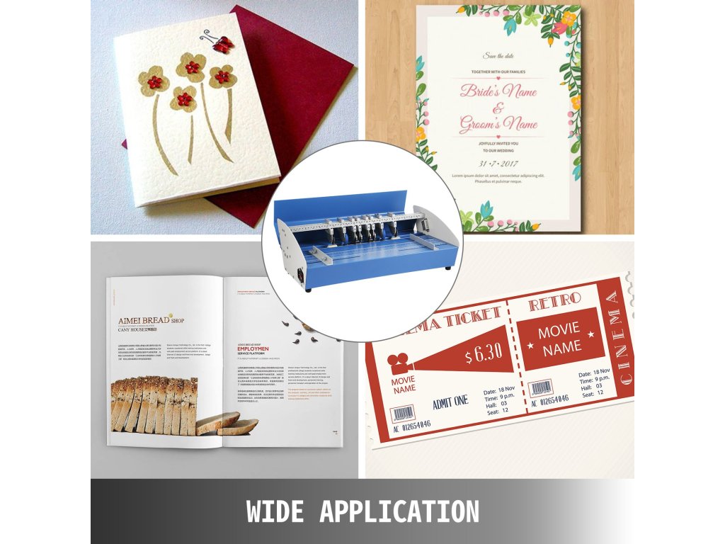 Ez a kártyahajtogató gép ideális lapos nyomatok készítéséhez fájlokhoz, térképekhez, fényképekhez, meghívókhoz, étlapokhoz, mappákhoz, könyvekhez, A4-es papírokhoz, albumokhoz, étlapokhoz, magasfényű borítókhoz, könyvborítókhoz, kemény borítókhoz, brosúrákhoz stb.