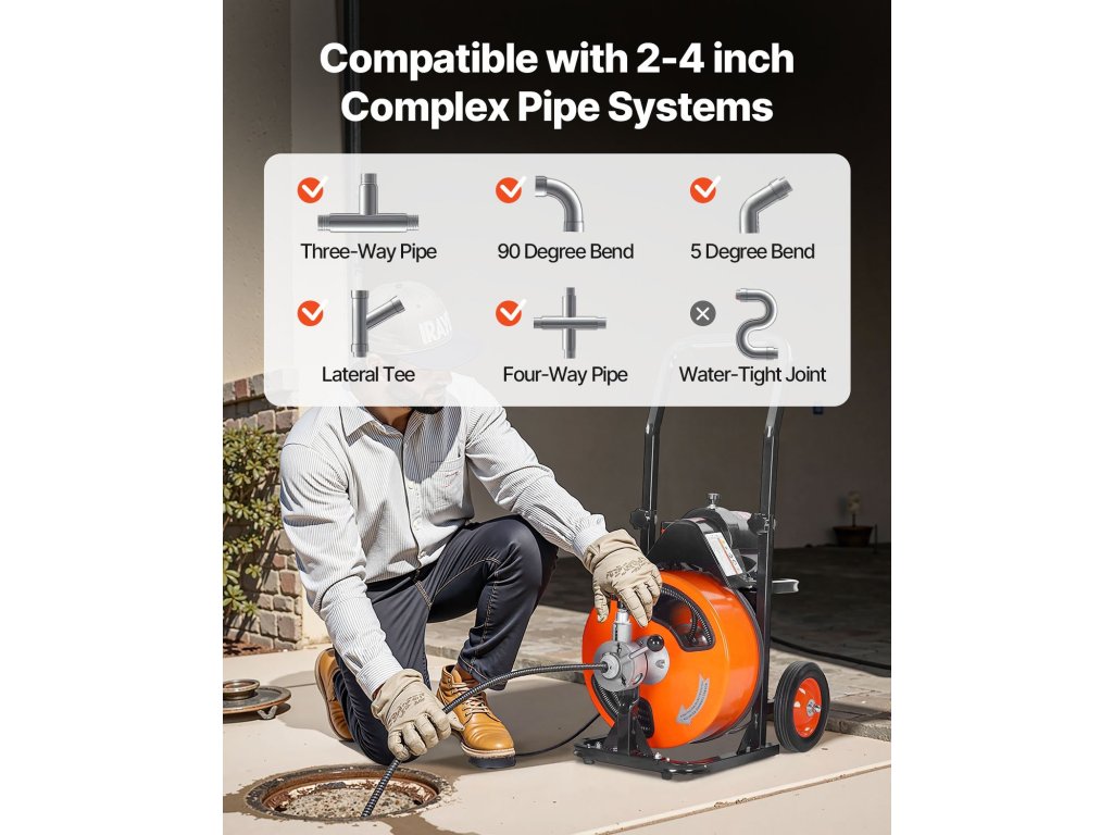 Elege van a dugulásos lefolyóvezetékekből, a drága vízvezeték-szerelési szolgáltatásokból és a hiányos lefolyókból? Akkor mondjon búcsút a baktériumoknak és a szörnyű szagoknak! Hagyja, hogy a VEVOR 100 FT x 3/8 In fix kábeles elektromos lefolyótisztító gép egy csapásra megoldja az összes dugulásos problémáját, mindenféle gond nélkül!