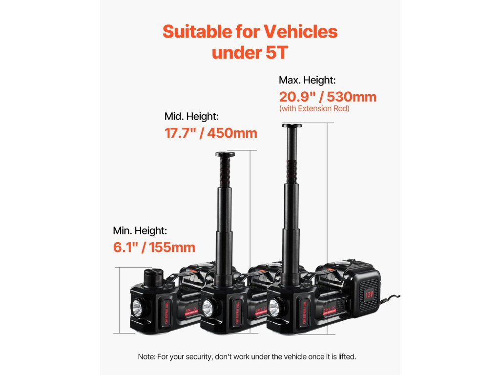 A sokoldalú használatra tervezett elektromos autóemelő készlet ideális személygépkocsik, terepjárók, teherautók és egyéb járművek emelésére. A zökkenőmentes és hatékony emelést biztosító hidraulikus szerkezetnek köszönhetően mindössze 2 perc alatt éri el a teljes magasságot, így értékes időt és energiát takaríthat meg vészhelyzetek vagy rutinszerű karbantartás során.