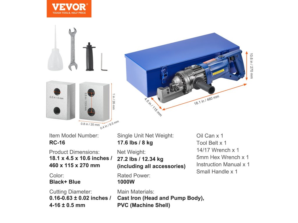 Elektromos hidraulikus betonacél-vágó 1000 W, 4–16 mm, 2 mp