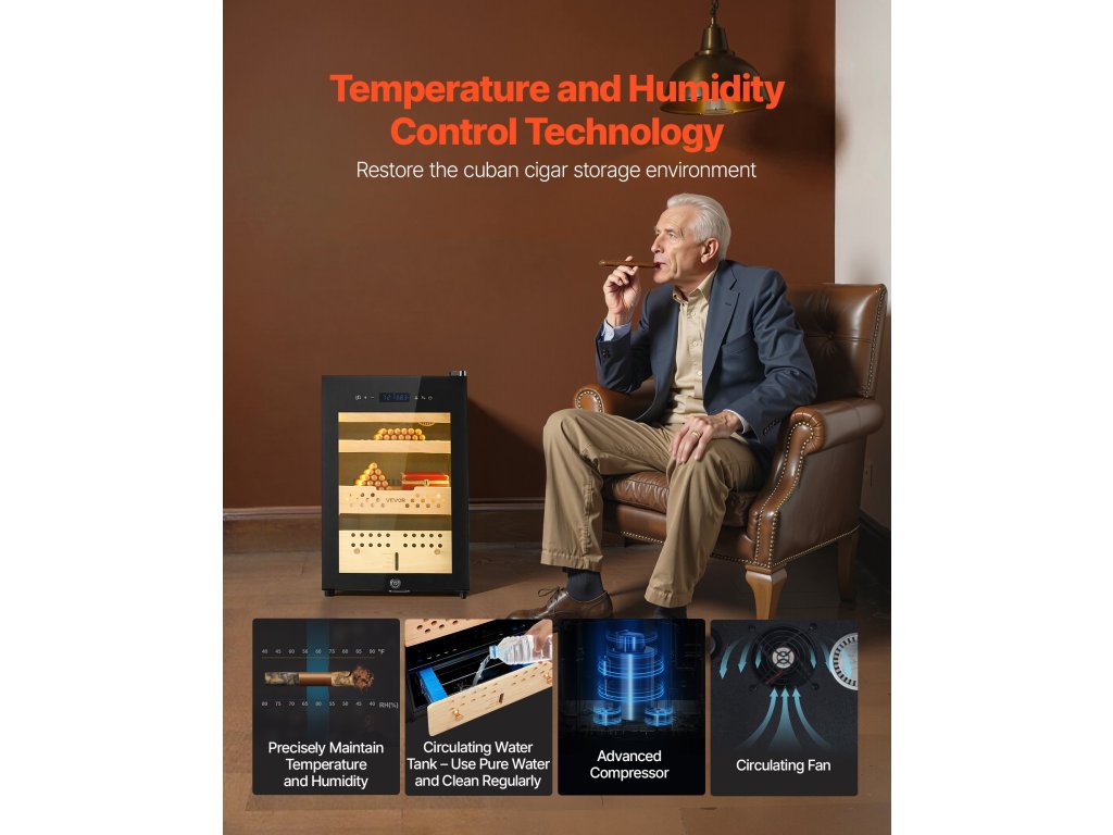 Egyenletes és szabályozott hőmérsékletet és páratartalmat tapasztalhat, amely hatékonyan csökkenti a szagokat, és megakadályozza a szivarok kiszáradását vagy túl nedvesedését. Elektromos szivaros humidorunk biztosítja, hogy minden szivar tökéletes állapotban maradjon, és megőrizze egyedi aromáját és gazdag ízét.
