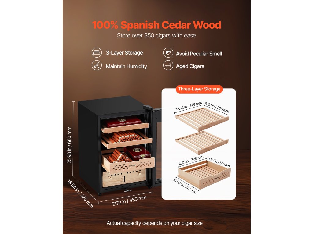 Ez a spanyol cédrusból készült elektromos humidor akár 350 szivar tárolására is alkalmas, miközben fokozza azok ízét és aromáját. Csendes működésével, állandó hőmérséklet- és páratartalom-szabályozásával, valamint ammóniacsökkentésével optimális állapotban tartja szivarjait. A kétrétegű üvegnek és az érintőképernyőnek köszönhetően könnyen kezelhető.