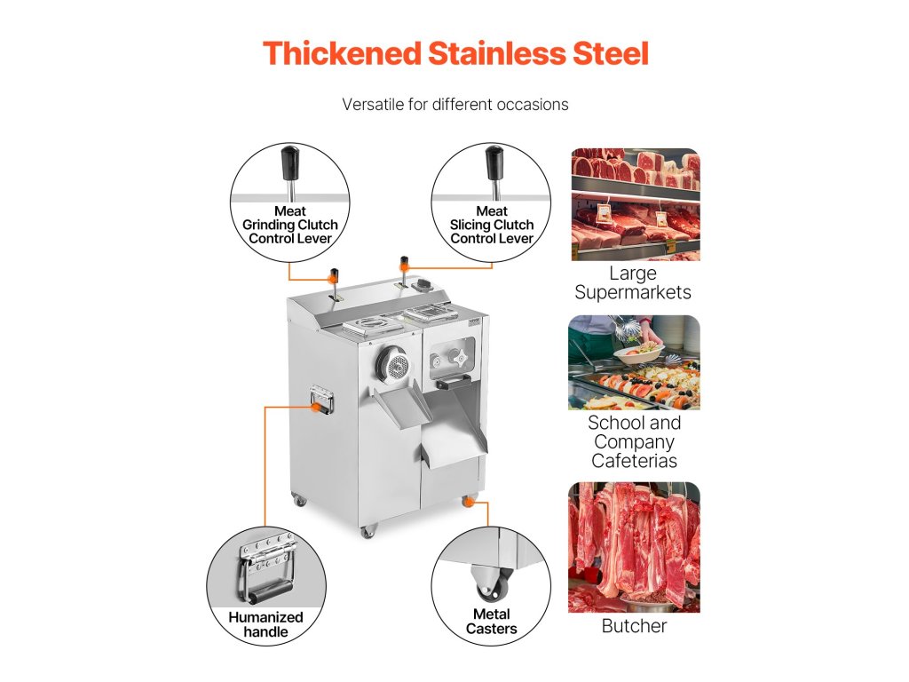 A hús, hal és zöldség darálására és szeletelésére alkalmas kereskedelmi húsdaráló és szeletelő ideális konyhákba, éttermekbe és gyárakba - mind személyes, mind kereskedelmi célokra.