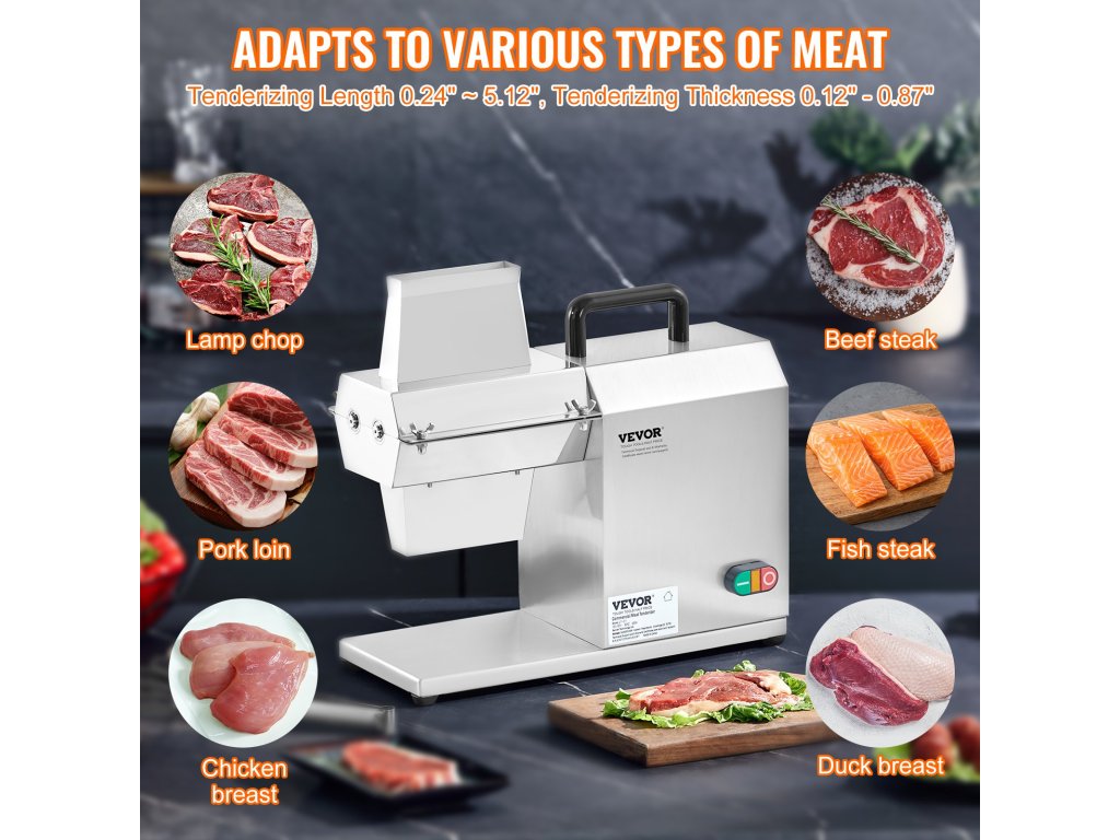 Legyen szó báránybordáról, sertés szűzpecsenyéről, csirkemellről, steakről, halfiléről vagy kacsamellről, a mi húspuhító berendezésünk mindenre képes. A 6-130 mm-es puhítóhosszúsággal és a 3-22 mm-es vastagságtartományával megfelel a különböző puhítási igényeknek.