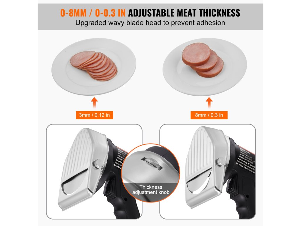 Elektromos kebabkés 80W, rozsdamentes acél, 2 penge, Φ4"/100mm, 0–8mm