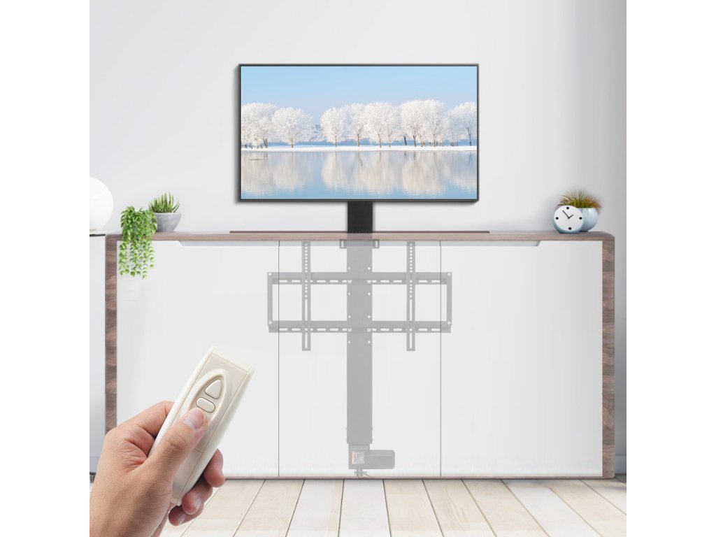 A motor uralja a TV magasságállítását. Ezt a motoros TV-emelőt 1000 N-os elektromotorral terveztük, amely erőteljesen működik és fokozza a mozgást.