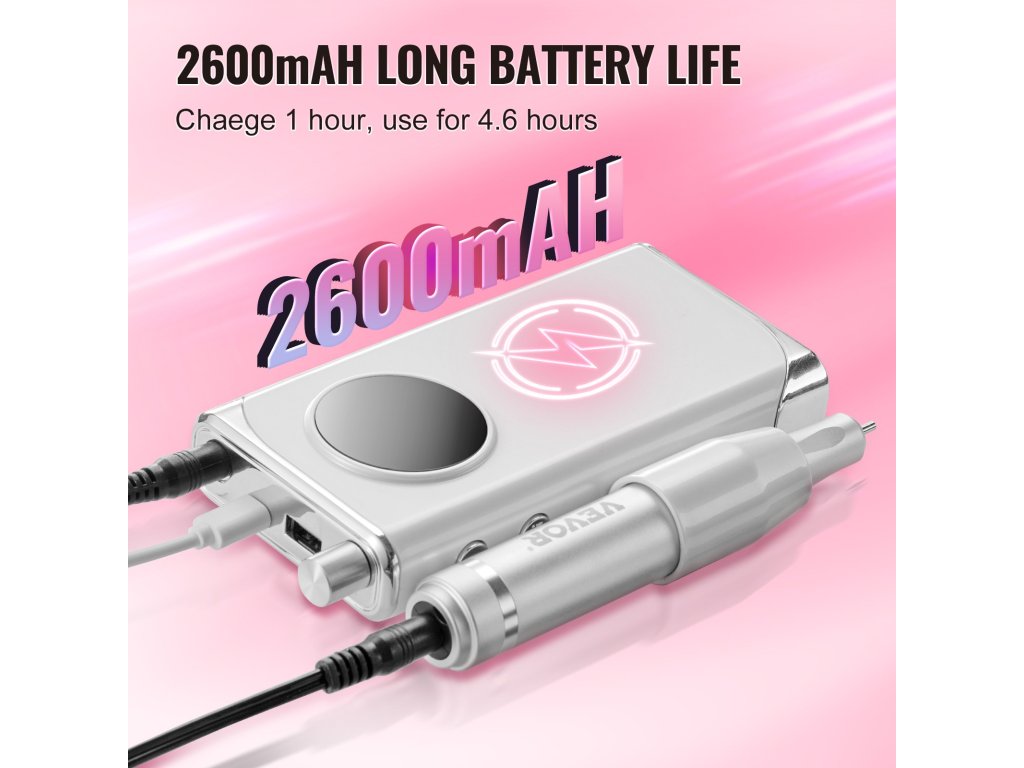 Mondjon búcsút a gyakori újratöltésnek vezeték nélküli elektronikus körömreszelőnkkel, amely nagy kapacitású, akár 2600 mAh kapacitású akkumulátorral rendelkezik. Élvezze az akár 4,6 órás folyamatos használatot egyetlen feltöltéssel, kiküszöbölve a bosszantó megszakításokat a körömápolási rutin során.