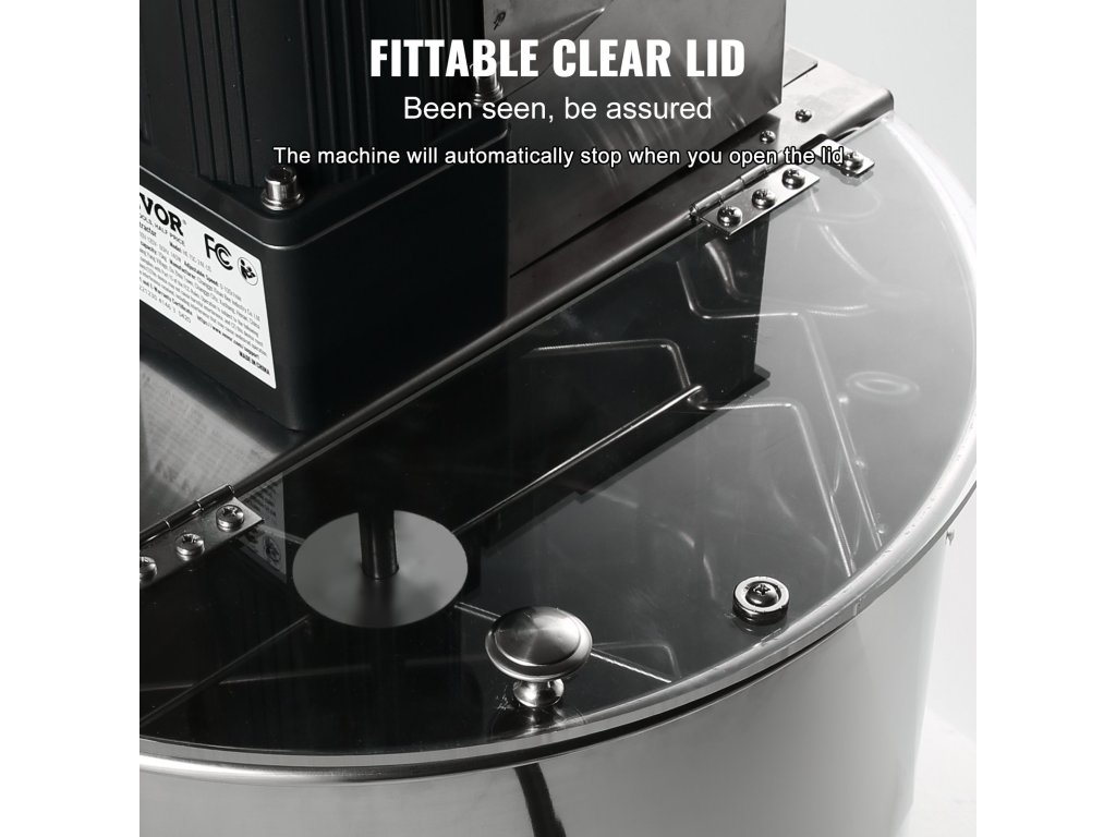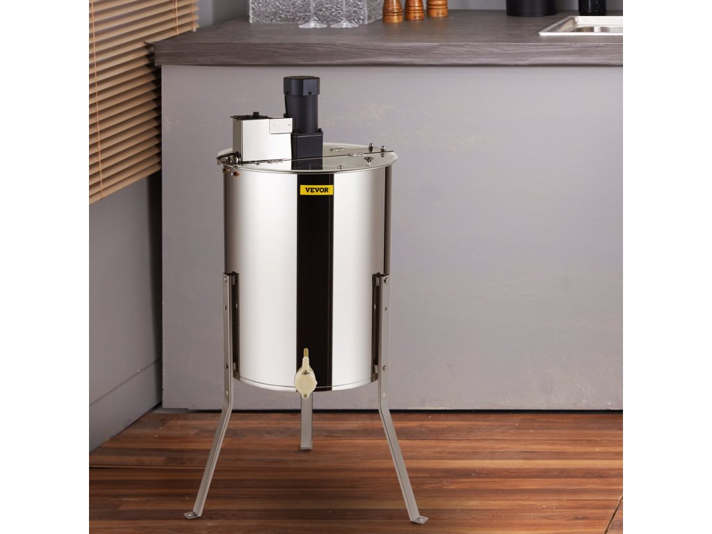 Az acél mézkiemelő 1,8"-es mézszeleppel rendelkezik a méz kilépéséhez és kúpos aljával, amely segít a méz teljes eltávolításában.