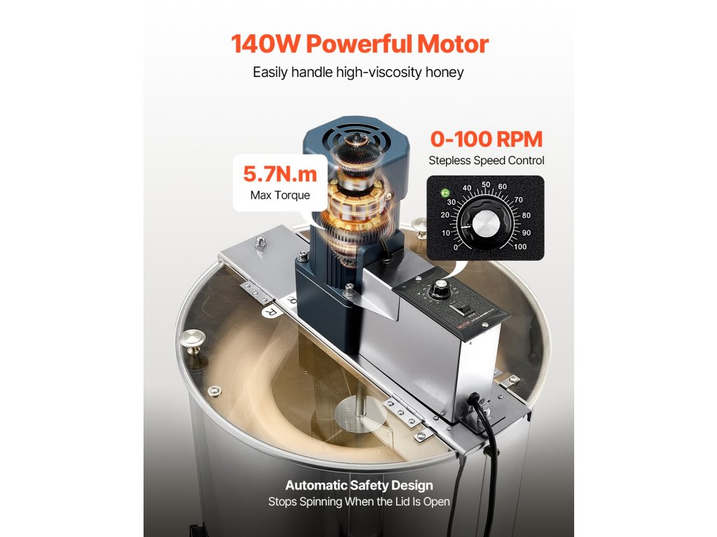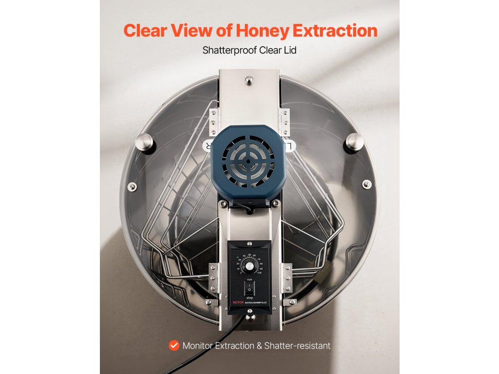 Elektromos mézpergető 3 kerethez 140W, rozsdamentes acél dob, átlátszó fedél