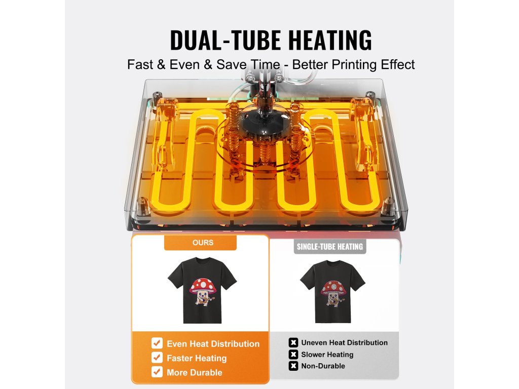 A hőátadó gép dupla csőfűtési technológiával van felszerelve a hő egyenletesebb elosztása érdekében. Ez a kialakítás javítja az eredményeket és a vasalás sebességét az egyenletesebb hőmérséklet-eloszlás és a stabil fűtés fenntartása révén, így minden alkalommal egyenletes és hatékony eredményt biztosít.