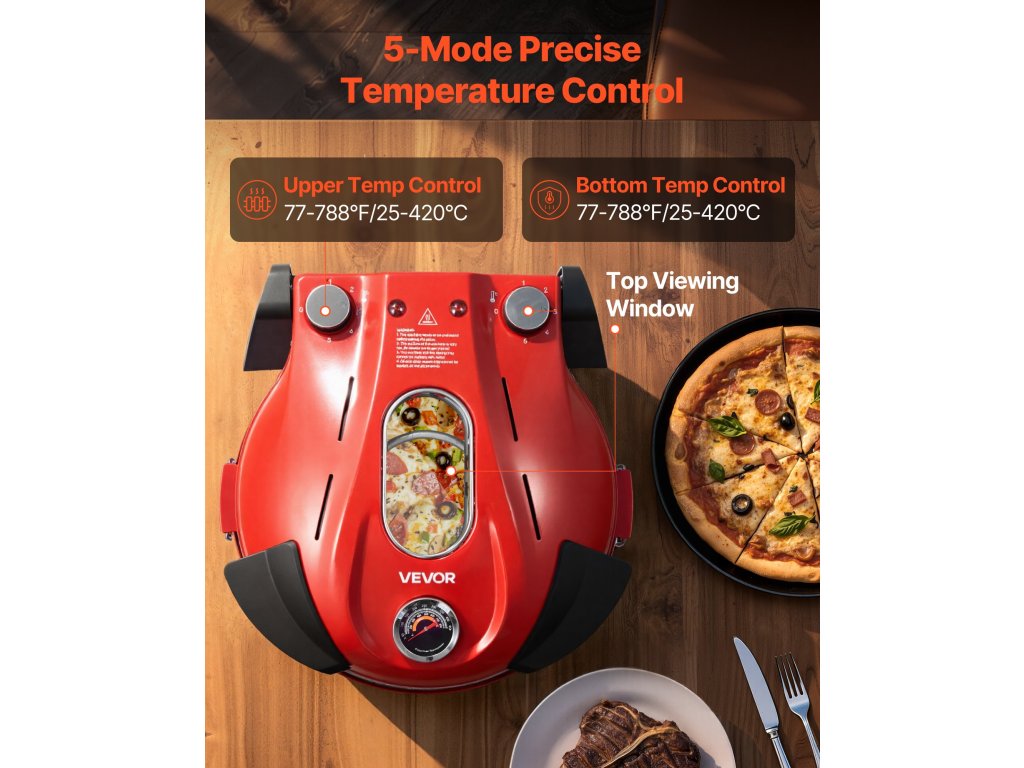 Elektromos pizzakemence 1200 W, 304,8 mm-es kő, 5 üzemmód, 420℃