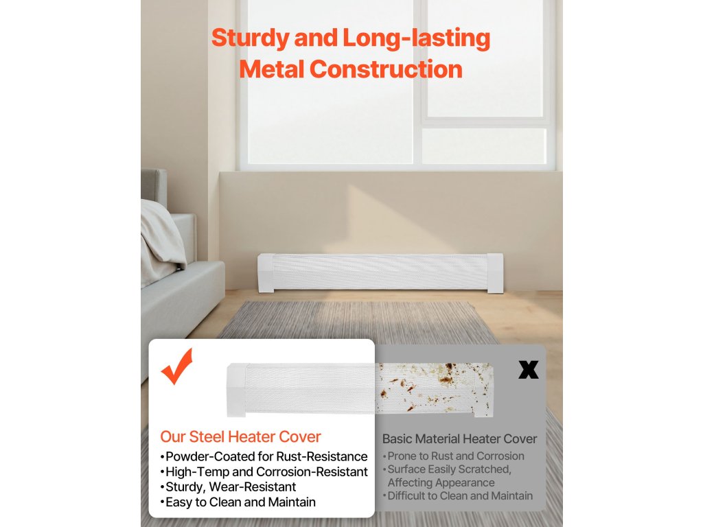 Ez a radiátorburkolat erős acélból készült, és hosszú távú használatot garantál deformáció nélkül. Karcálló végzáró sapkákat is tartalmaz, hogy megakadályozza a mindennapi használat során keletkező sérüléseket. Az optimalizált szellőzőkialakítás megakadályozza a túlmelegedést, meghosszabbítva ezzel a fűtőtest élettartamát.