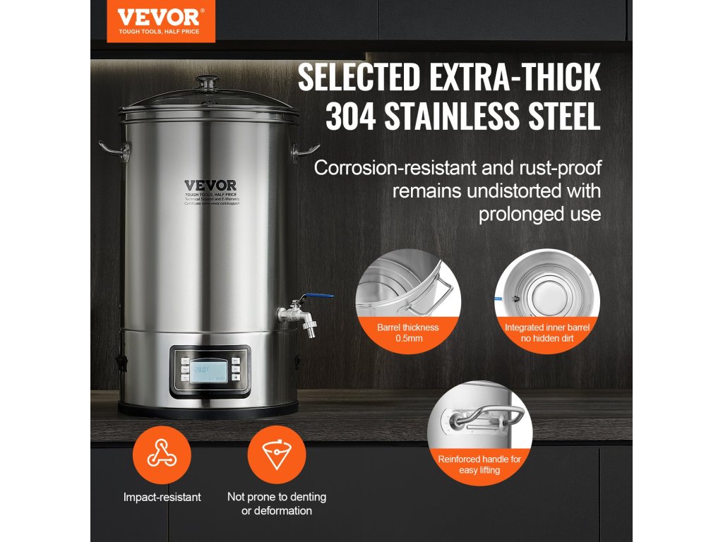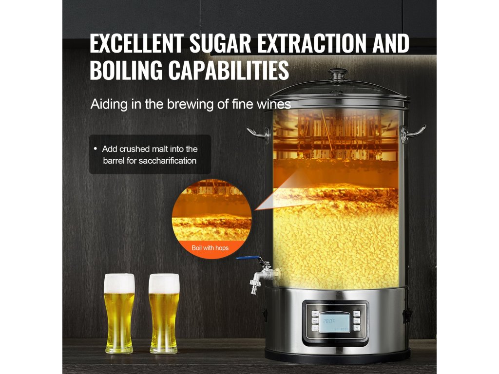 Elektromos sörfőző rendszer 8 gallon/30,3 l, 304 rozsdamentes acél, üvegfedél