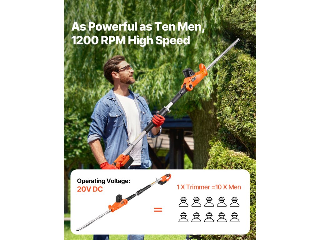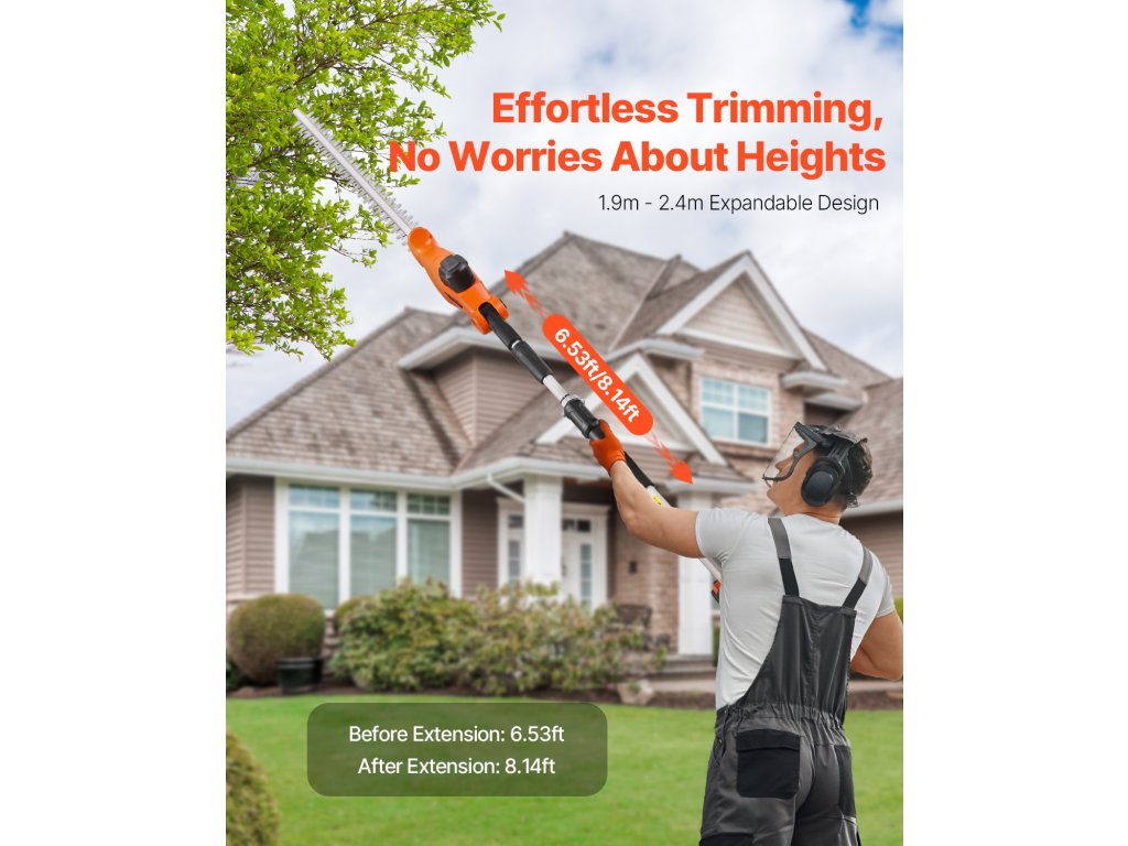 Elektromos sövényvágó 20 V, 20 hüvelykes penge, 1,8-2,4 méter, 5 pozíció