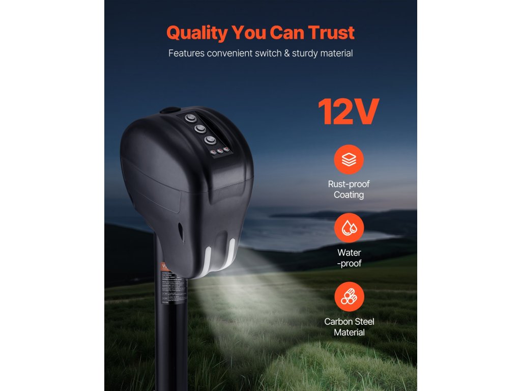 Ez a nagy teljesítményű nyelvemelő tartós szénacélból, horganyzott csövekből és 12 voltos egyenáramú motorból készült, és tartósnak készült. A fekete porfesték és a horganyzás kiváló korrózióállóságot biztosít, meghosszabbítva ezzel az élettartamát.